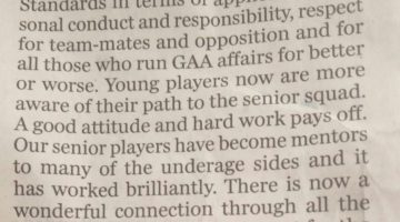 The attached image is a paragraph from Colm O’Rourkes Article in today’s Sunday Independent. The para and article are worth a read.