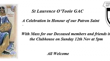 St Laurence O’Toole GAC invite all to a celebration in honor of our Patron saint with mass for our deceased members and friends in the …
