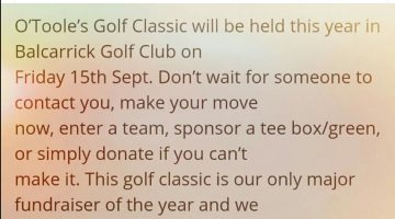 ———- Forwarded message ———- From: “Terry Sheridan” <tedsheridan40@gmail.com> Subject: [13] GOLF CLASSIC To: <journalist@otoolesgac.ie> Cc: